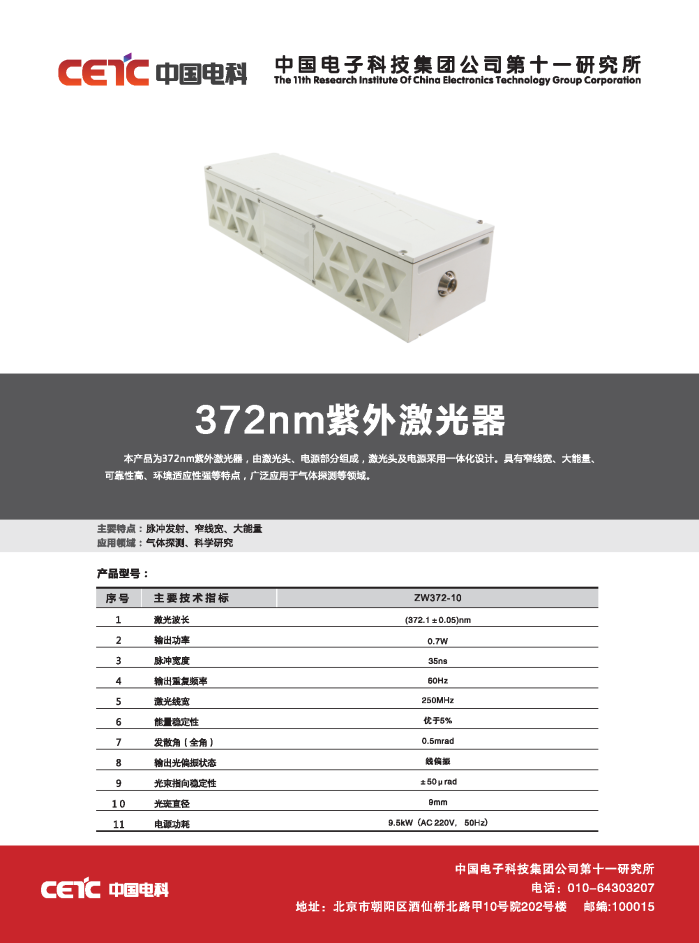 • 372nm紫外激光器